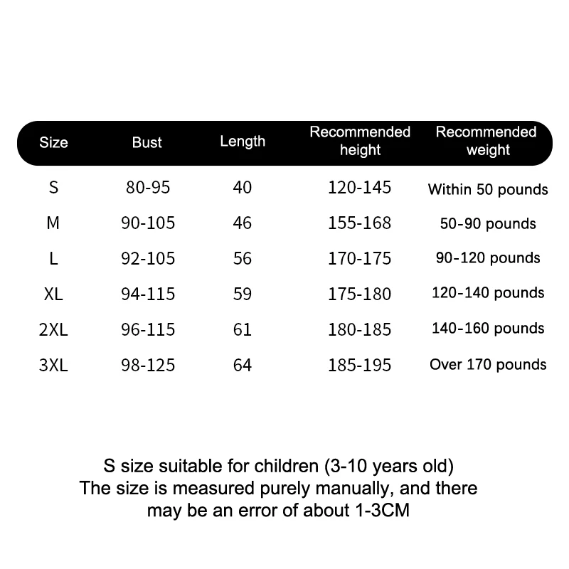 Size: S 10-20kg, M 20-30kg, L 30-40 (for kids)/ XL 40-60kg / XXL 60-80kg / 80-100 XXXL kg (optional)